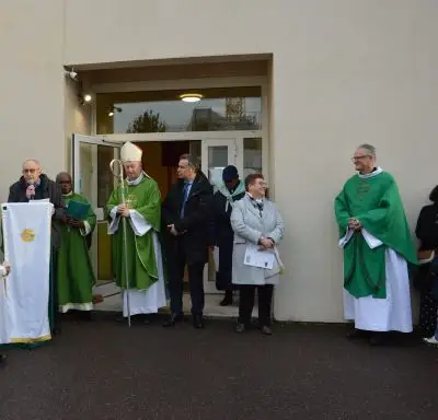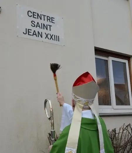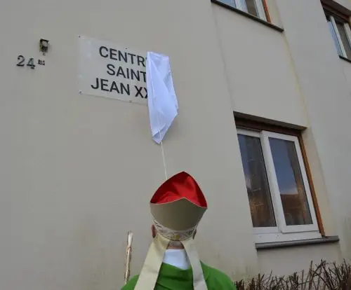 L’inauguration s’est concrétisée par plusieurs gestes symboliques : la coupure du ruban, le dévoilement puis la bénédiction de la nouvelle plaque portant le nom du centre, désormais intitulé « Centre Saint Jean XXIII ».