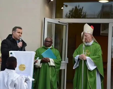 Après le mot de bienvenue du curé, le représentant du Conseil paroissial est intervenu pour retracer l’historique de la construction du centre paroissial Jean XXIII. Il a notamment souligné que la date du 18 janvier 2026 marquait le 56ᵉ anniversaire de la toute première inauguration du centre, en 1970. L’adjoint au maire d’Achères a ensuite transmis les félicitations du maire pour le bon déroulement des travaux, réalisés dans les délais prévus.